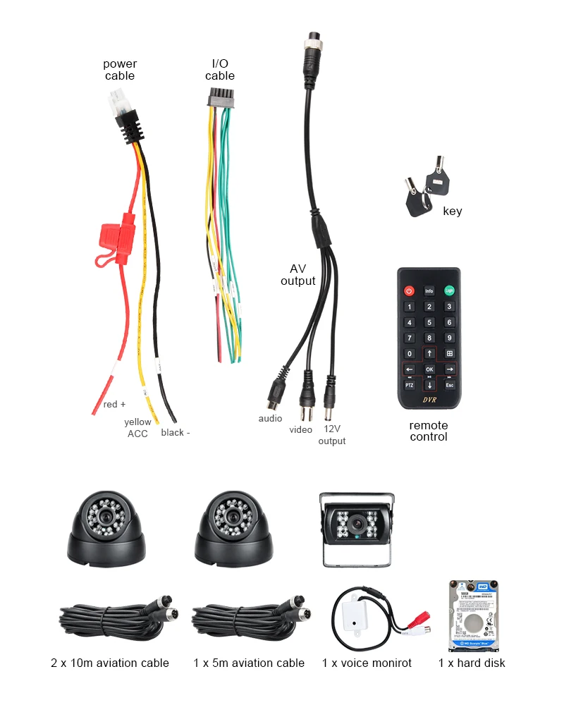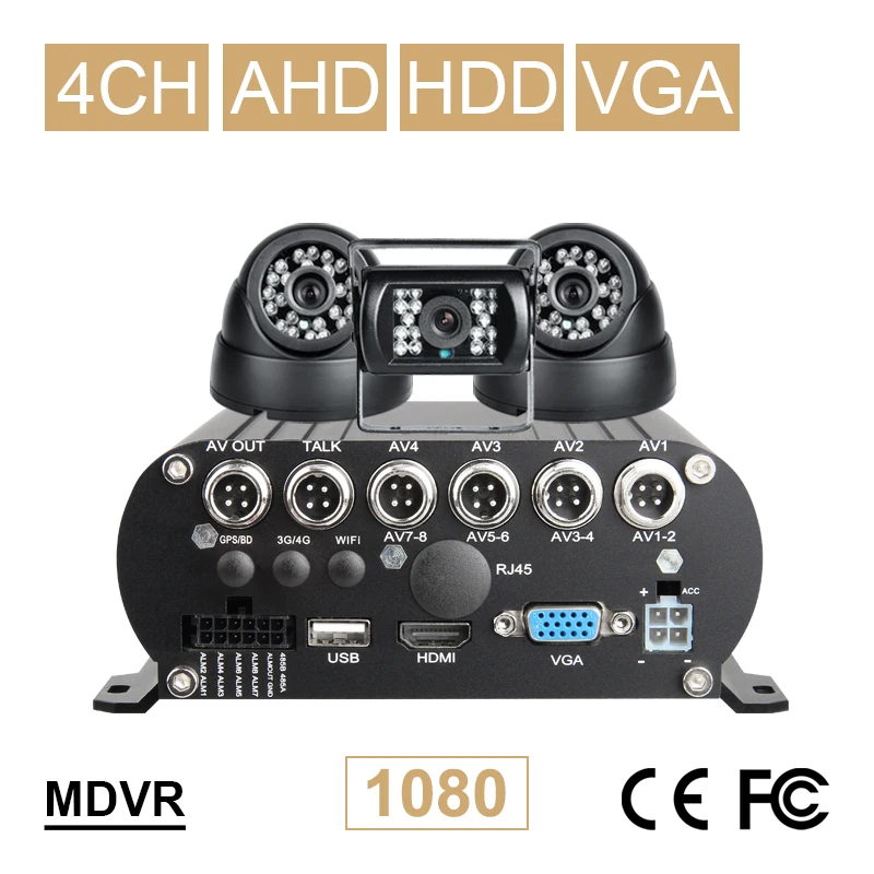 Best Free Shipping 4CH Hard Disk Mobile Dvr +3Pcs 2.0MP HD Night Vision Backup Camera+500GB HDD For Bus